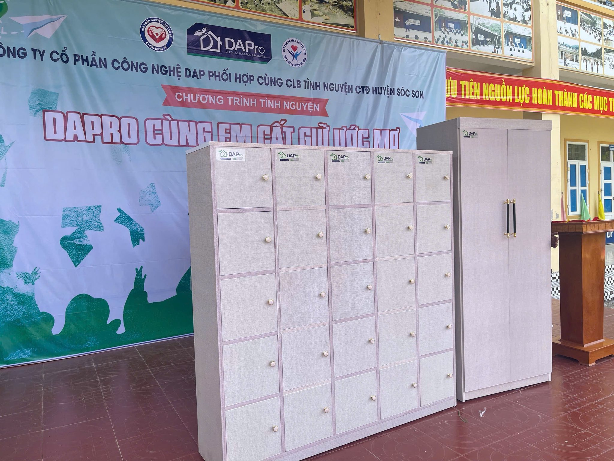 - 20 tủ nhựa cao cấp DAPro – giúp nhà trường cải thiện không gian lưu trữ, bảo quản tốt hơn tài liệu và đồ dùng học sinh