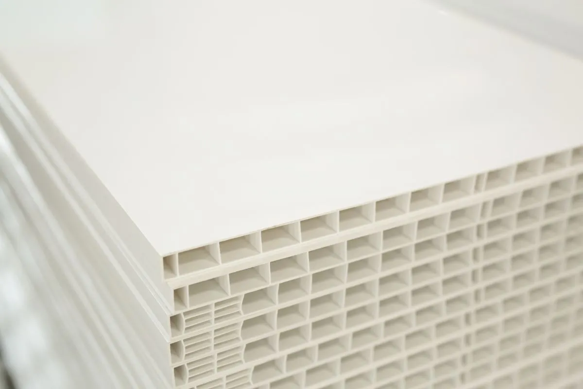 Lớp lõi nhựa có dạng tổ ong (có các lỗ rỗng ở giữa) để hỗ trợ cách âm, cách nhiệt tốt hơn và giảm trọng lượng vật liệu, nhờ đó việc thi công lên tường cao hoặc trần nhà trở nên an toàn, dễ dàng.