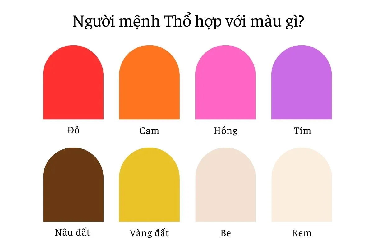 Quy luật ngũ hành chỉ ra rằng Hỏa sinh Thổ, vậy nên những gam màu thuộc hành Hỏa đặc biệt phù hợp với người mệnh Thổ. Gam màu thuộc hành Hỏa bao gồm đỏ, cam, hồng, tím – những màu mang năng lượng ấm, tạo cảm giác ấm cúng, đầy sức sống. Áp dụng trong không gian nội thất, các gam màu này nên được sử dụng như điểm nhấn (tường nhấn, decor, vật dụng nhỏ) tránh gây cảm giác quá nóng hoặc rối mắt.